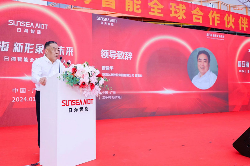 大会伊始,珠海九洲控股集团有限公司董事长曾建平代表日海智能控股股东致辞,曾董对各位合作伙伴的莅临表示诚挚的感谢,同舟共济、互利共赢,日海智能取得如今的成绩离不开日海智能每一位合作伙伴的重要贡献,期待未来与合作伙伴继续携手,共同迎接智慧未来。